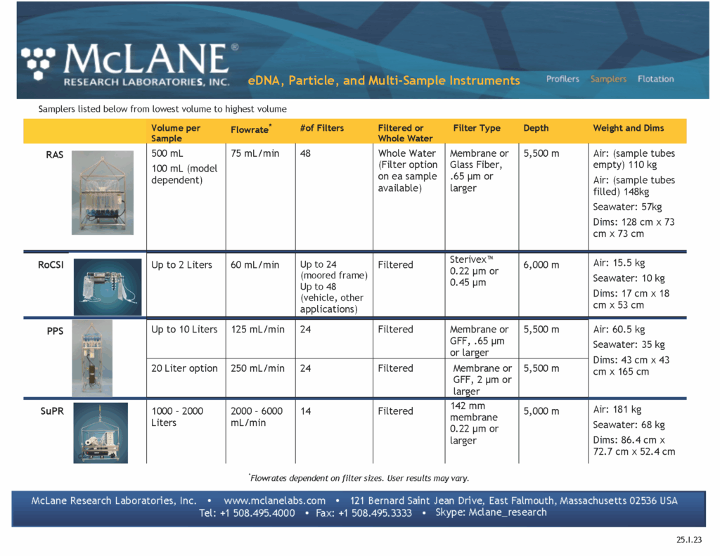 • Download the eDNA, Particle and Multi-Sample Instruments chart shown below
